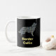 Gräns Collie hund silhouette gult, blått och svart rutnät linjer abstrakt mönster på svart mugg. Anpassa med ditt namn eller hundar namn på hund grund. Få tassar här i personlig mugg att visa kärlek för dessa fyraåriga päls spädbarn. Det ger också en underbar gåva till hund och pappor i Pappor, Mors dag eller födelsedag.