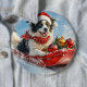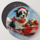 Gräns Collie Hund i Sledge Låt det snöa jul Knapp