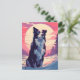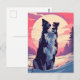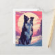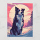 Färgkonst med en Gräns-kollie i snöskogen under solnedgången