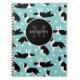 Den svarta och vita gräns-kollisionen sitter, står och ljuger med spritt tass avtryck mot blå bakgrund med ditt eget anpassningsbar monogram och namn.