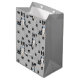 En bild av en Hund i Gräns Collie finns i mönster på denna presentsäck i tillfällen. Hund bär en blå scarf mitt i mönster av svart tass avtryck och upprepas på silver grått-bakgrund. Båda sidor av påsen har samma mönster.