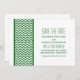Elegant och modern Chevron Border Spara datum-anmälan med ett enkelt randigt mönster i mörkgrönt och vitt. Denna stilrena design sätter tonen för ett elegant bröllop. Lätt att anpassa, lägg bara till din bröllopsinformation i de tillgängliga textfälten. Klicka på "Anpassa" för att hitta fler anpassningsalternativ.