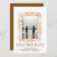 Bröllopet Spara datum meddelande med brunt fall i Berries och löv gräns. På framsidan av detta vackra meddelande finns en ram som är gjord av bär och löv, texten "Spara datumet" i brunt och ditt foto. Baksidan är av massivt brunt färg.