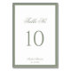 Bordsnumret Formal Classic Sage Grönt Gräns Script Bröllop ger dig tidlös elegans till din mottagning. Med en förfinad sage grönt gräns och klassisk skripttypografi är den här designen perfekt för vår och sommar bröllop, vilket ger en sofistikerad beröring till din bord-décor.