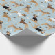 Cute Gräns Terrier hundar sitter, står och välter med utspridda ben och tassavtryck i hund mot blå bakgrund.