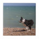 GränsCollie på stranden Kakelplatta
