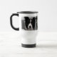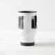 Söta gränsColliehundar vänder mot den plast- travel mug.