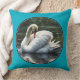 En graciös svan flyter försiktigt på en stillastående damm, vars vita fjädrar på ett vackert sätt reflekteras i vatten. Den goda bakgrunden till lush grey tillför en fredlig ambition till scenen.