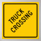 Vägskylt och vägskylt i internationell som avråder från lastbil verksamhet. Finns i ord eller bild.