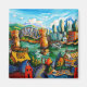 Den här klassiska Vancouver-scenen är vad du ser när du kor på Granville Street-bron. Det omfattar berggrunden, en bit Stanley Park, Granville-färjeterminalen och den vackra konsten deco Burrard Street-bron omgiven av båtar och byggnad. Jag ville betona kontrasten mellan det likformigt designade och reflekterande kontoret i byggnad mot det nyljusa före detta industriförbundet Granville Island. Byggnad i den centrala delen av staden verkar alltid lång och uppsåtlig, men allt liknar varandra, som ett fält av blommor som vänder sig mot sol, medan Granville Island är helt galet, oregelbundet och ljust.