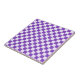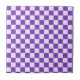 A purple and white checkerboard pattern with alternating squares, creating a balanced design. The vibrant colors give a playful, energetic feel.