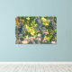 En närbild fångar ett kluster av mogna druvor av mörk lila som hänger från en vinstock. Druvorna är i hög grad och saftiga, med en lätt blomning av vitt pulver på yta. Vinet är tjockt och gnarlat, med brun bark och grönt löv. Bakgrunden är en oskärpa av gröntens löv och en antydan om blå himmel, vilket tyder på en solartsinställning.