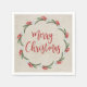Röda bär, gräs och vita blommor på en texturerad elfenbensbakgrund med God jul hälsning, dessa helgdag pappra blöjor i flera storlekar. MATCHING papper tallrikar och mer i vår affär.