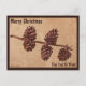 En rustik, enfärgad brun bild av gräs-koner på ett gren, som läggs ovanpå en gammal papper bakgrundsbild. Anpassadets text som läser, "God jul", visas också. Det finns också ett ställe för er att lägga till er egen tilläggstext.