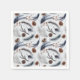 Pappra servetter med ett vackert mönster. Gräs-koner, fjädrar, gräs nål och bärsaft. Rustik vattenfärgsdesign.