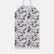Juletiketter med ett vackert mönster. Gräs-koner, fjädrar, gräs nål och bärsaft. Rustik vattenfärgsdesign.