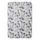 En badmatt med ett vackert mönster. Gräs-koner, fjädrar, gräs nål och bärsaft. Rustik vattenfärgsdesign.
