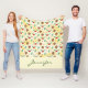 Blankett med en söt jul mönster med gräs-koner och holly på en gult vattenfärgsbakgrund med små vita cirklar spridda runt. Personlig namn skrevs i en gult gräns längs grund.