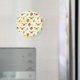 En magnet med ett sött mönster med gräs-koner och holly på en gult vattenfärgsbakgrund med små vita cirklar spridda runt.