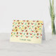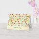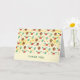 Tack för att du har ett sött mönster-kort med gräs-koner och holly på en gult vattenfärgsbakgrund med små vita cirklar spridda runt.