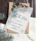 Winter wonderland, gräs cones och snöflingor sparar datumet. Spara det datum som kan anpassas med ditt namn på ett bra sätt. Klicka på knappen "anpassa" om du vill ändra teckensnittet stil, färg och storlekt.