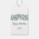 Dessa Juletiketter har en gräs- och eukalyptus löv-utformning. Anpassa framsidan och baksidan med din egen text.
