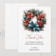 Tack kort med en söt julkrans. En fin bild med en gräs-andedräkt som dekoreras med röda blommor, holly och en underbar blå båge. Underbart.