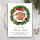 Kort för julhälsning med en vacker andedräkt som dekoreras med färgstarka bubblor. Lägg till alla dina vackra detaljer i den här lättförståeliga mallen och lägg till det här kortet med ditt baby-foto för att göra det till ett enkelt meddelande.