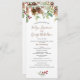 Elegant Winter Greenery-Bröllopsprogrammet. Denna utformning illustrerar gräs grenar och koner med röda bär i vattenfärgen stil på vit bakgrund. Du kan justera texten enligt dina krav.