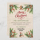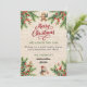 Beige faux-bakgrunden tittar. Gräs träd grenar och röda bär, en pepparkaksgubbe och ett sött uggla med en scarf och en beanie som levererar posten. God jul är skrivet med ett elegant skript. Röd, grönt och svart text. Anpassa och lägg till texten och namnen. En överlappande bild som bakgrund, inte riktig överlappande struktur