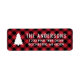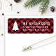 Helgdag returetiketter har en vit gräs träd-silhuett med vit modern anpassningsbar som kan vara personlig. Röd och svart buffelkontroll/mönstrad bakgrund ingår.