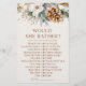 Det här är en Skulle hon hellre? Möhippans spel. *Skulle hon hellre? - Briden kommer att fylla i sitt eget personliga svar lakan. Gästerna kommer att ringa in det rätta alternativet med tanke på sina egna personliga kunskaper om bruden. Den som får de rätta svaren vinner!