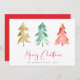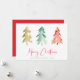 Ett modernt kort för helgdag som innehåller abstrakt vattenfärger i gräs träd i guld, rött och grönt, "God jul" skrivet i en söt som samordnar röda manus och i namn och år i din familj i en enkel text som samordnar grönten.