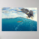 Gråsej, bläckfiskad örn som attackerar fisk poster