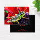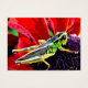 Det här briljanta färgaden Artist Trading Card har en glansig grönt, gult och svart gräshoppor som går över till lilan på en blomma med vackra röda petaler.
