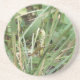 Den här söt sandstenen underlägg ett detaljerat foto av en grönt gräshoppa som på ett vackert sätt kamoufleras mot det gräsklippsblad som det är sitta på. Fotografiet togs med makrofotografi för ett häpnadsväckande detaljerat resultat.