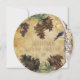 Semestrar den härliga julen kortet för att överföra till alla dina vänner och familjemedlemmar, särdrag ett rundakort med bruntet texturerad lookbakgrund, gräskottar, trädgrenar, en röd huvudsaklig fågel och anpassadetext som läser Natal Feliz på bekläda, den samma texturerade lookbruntbakgrunden, gräskottar, grenar, ett björkträd och en hackspett med ett anpassadeområde för att tillfoga ditt efternamn, förnamn och strömår på baksida.