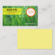 Det här affärskortet för gräsmatta är helt och hållet anpassade och underbarare för alla landskapsföretag. Differentiera dina affärskort från andra genom att inkludera rabatten för nya kunder i en ljus orange färg. Orange förknippas ofta med lycka och optimism och fångas i öga. Du kan anpassa det här kortet ytterligare genom att ange dina gräsmatta, t.ex. rörning, kantning, gödsling och ogräs. Ta med ditt namn eller ditt företag namn, din titel, ditt mobilare nummer och e-postnummer adress (valfritt). Kortets baksida är en snål gult färg som hämtar öga men som också är tillräckligt lätt för att du ska kunna skriva ytterligare information till din kund.