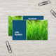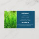 Ett vackert affärskort av blått och grönt gräs. Har ljusblå och vit text på blå bakgrund - med ett glimt fotografi av den ljusa grönten. Det här kortet för snyggt kommer att stå ut från folkmassan. Lägg till ditt namn eller ditt företag namn på framsidan och din affärsinformation på baksidan.