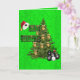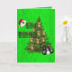 Bild är en Julgran med gräsmatta bowlar, en god jul logotyp och gräsmatta julhatt