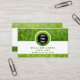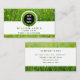 En modern utformning av logotypen för gräsmatta och vårdspecialister. Ett minimalistiskt affärskort för logotyp av personlig för gräsmatta, företag och företag som sysslar med landskapsvård. Ett enkelt och professionell sätt att presentera ditt företag. Anpassa dina uppgifter för att skapa ditt eget unika affärskort.