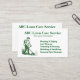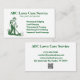 En ren och vass utformning av affärskortet som innehåller en detaljerad illustration av en gräsmatta- och omsorgsarbetare med hjälp av en strängtrimmare. Listor över nyckel-tjänster, inklusive avverkning, rensning och gödning - perfekt för professioneller som är inriktade på noggrant, detaljorienterat underhåll av varv
