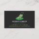 Ett affärskort med en grönt silhueteikon med en gräsmatta bland gräset. Perfekt för dem som arbetar med gräsmatta och underhåll, kontroll av ogräs och landskapsvård. Anpassa din affärsinformation i de textmallar som finns.