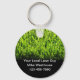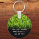 Kedjor för PR-Gräsmatta i en enkel layout med tre linjer för ditt företag namn, ditt namn och ditt kontaktnummer med en gräsmatta för grönt gräs i bakgrunden. Använda för att befordra ditt företag med en praktisk hjälp som dina kunder kan ge använda till en nyckel-innehavare för hus eller bil nycklar. Ett budgetvänligt sätt att sprida ord om era tjänster.