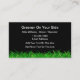 Enkla affärskort för gräsmatta designade med gräsmatta av gräs i bakgrunden och en enkel typisk visitkortslayout som du kan anpassa onlinen.