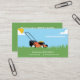 Ett affärskort som illustrerar ett landskap med gräs, sol, moln och en gräsmatta. Den skulle kunna vara lämplig för gräsmatta- och professionell- eller människor som arbetar i fält, såsom landskapsvård, växt och underhåll av gräsmatta, underhåll av gröntar osv.