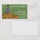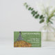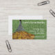 En visitkort för gräsmatta som är tjänste- eller landskap med grönt gräs, löv och, krattar.