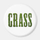 Magent med ord GRASS. Texten är gjord av ett foto av gräs för att få det att se ut som om det skärs av sod. Fin design för gräsmatta- och bogseringsföretag.