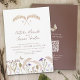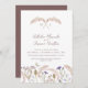 Söt botaniska vilda blommor och mjuka gräsväxter inbjudan till vattendörsbröllop med QR-kod på vitt med söt korsade gräsmonogramkonst i mjuka muterade rosa brun och ett urval av mjuka muterade vilda blomkonst längs grund hela handmålade i vattenfärg. Fintvätt till vintern känner botaniskt konst inbjudan med manustext på vit och en muterad rosa, brun, blå, mauve, lila färg palett. Anpassa med ditt eget initialer, namn, bröllop, datum, tid, plats, ytterligare information och QR-kod till din bröllop webbplats på baksidan. Andra matchande artiklar är tillgängliga. Ursprungliga vattenfärgsgraser och målning av vilda blommor och design av Sarah Trett för www.mylittleedenweddings.com
