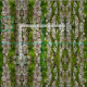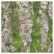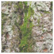 Stilfullt tyg presenterar ett djärvt upprepande mönster av moss på skäll. Det åldras grästrädskället har bleknat och förlorade några av dess yttersta lagrar. Vibrerande grön moss växer i lodrät räfflar i skället. Makroen fotograferar shows de växla randarna av skället och moss såväl som strukturen av varje. Skället varvas, scaly, med fina graderingar av färg: grånar, brunt och även blekt - grönt. Mossen bestås av av hår för myriadkortbran, som, fast träd önskade några gröna pälsviktig.